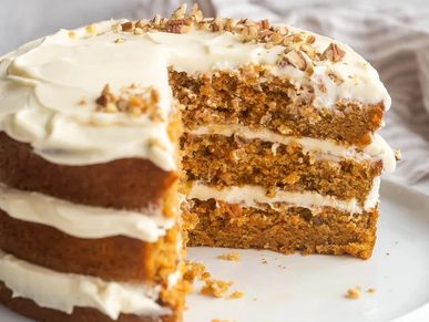 Melt in your mouth, premium ingredients delicious fluffy carrot cake with a vegan "cream cheese" tangy lemon frosting.